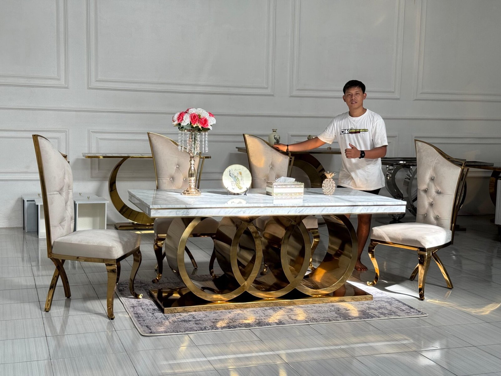 Terletak di Jl. Raya Tahunan, Sengon, Batealit, Kec. Batealit, Kabupaten Jepara, Jawa Tengah 59461. Di balik setiap karya furniture stainless steel mewah yang kami hasilkan, terdapat sebuah ruang kerja yang penuh dedikasi dan ketelitian—workshop kami. Inilah tempat di mana ide berubah menjadi realitas, di mana bahan mentah bertransformasi menjadi karya seni fungsional yang memancarkan kemewahan.