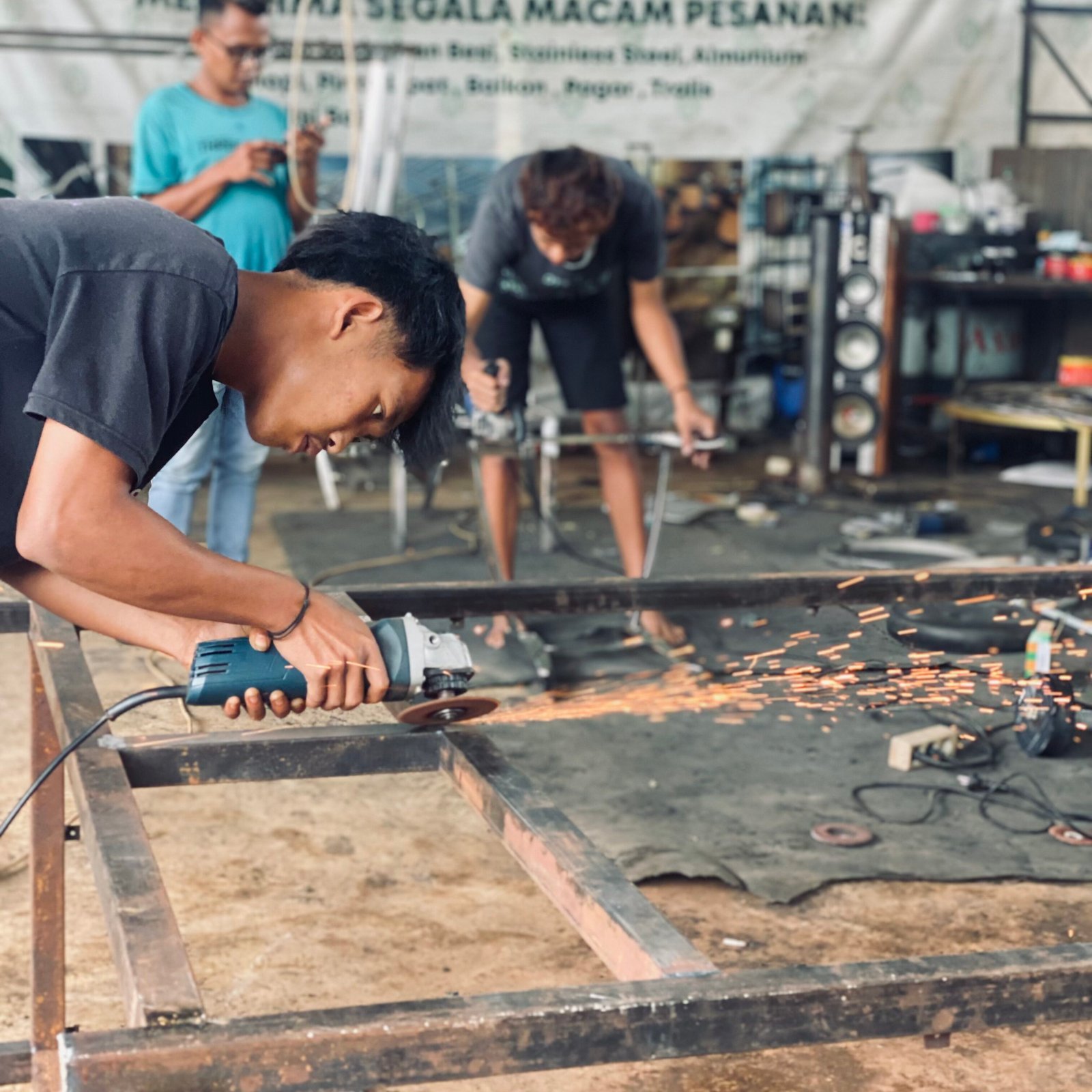 Workshop kami bukan sekadar tempat bekerja, tetapi juga ruang kolaborasi. Para pengrajin, desainer, dan teknisi saling berbagi ide, berdiskusi tentang desain, dan mencari solusi kreatif untuk setiap tantangan. Atmosfer kerja yang hangat dan profesional inilah yang membuat setiap karya memiliki karakter unik.